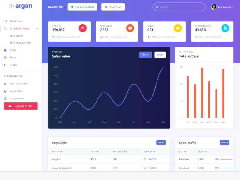 このパッケージは、適切に設計されたフロントエンドテンプレートと統合されたLaravelバックエンドを組み合わせたものです。 この一連のテンプレートの色の選択は、管理領域またはダッシュボードに明るく活気のある外観を与えるために行われたため、それが魅力的なものであれば、Argon DashboardLaravelがまさにあなたが探しているものである可能性があります。