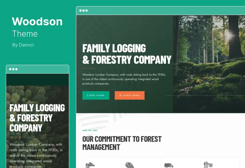 Woodson は、林業および伐採会社向けに特別に設計された最新の WordPress テーマです。 Woodson の直感的なユーザー インターフェイスにより、ユーザーは独自の Web サイトをすばやく簡単に作成できます。