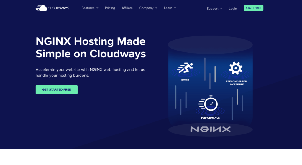 私の一番のおすすめはどれですか? 私は私のお気に入りのNGINXホスティングであるCloudwaysに手を挙げます。これには、スピーディーなパフォーマンスのための特別な加速式が付属しています。 特殊なニーズに合わせて高度なサーバー設定を利用します。 30ドルの特別割引をお見逃しなく。
