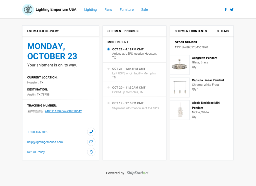- カスタムロゴ、配色、リンクを使用してブランド化された追跡ページを作成します(米国のみ)。