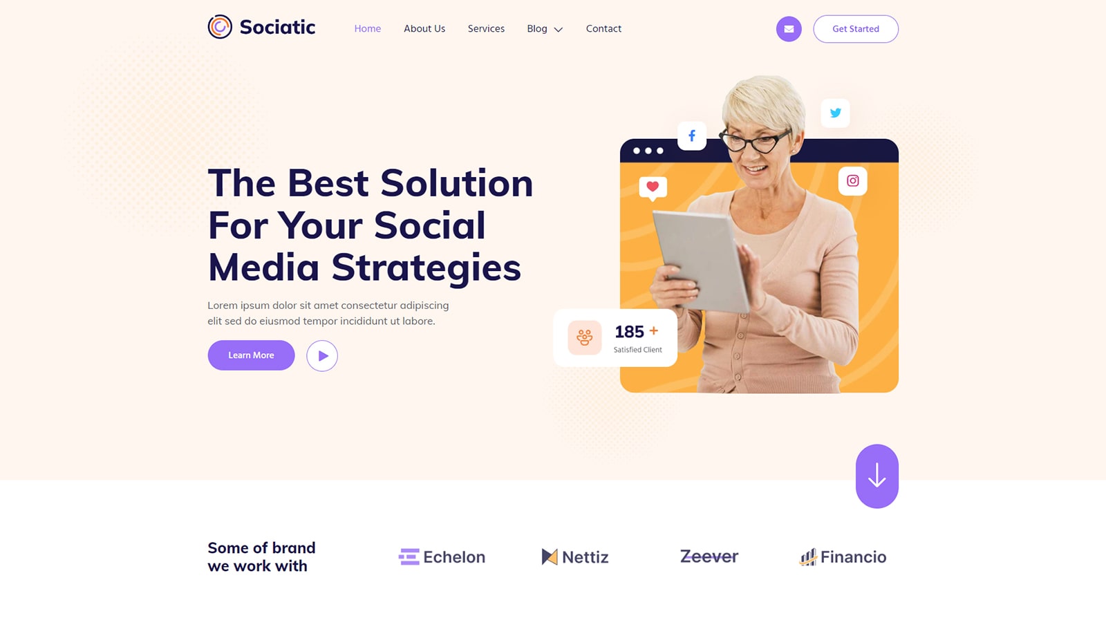 ソーシャル メディア マーケティング代理店向けに応答性が高く編集可能な Web サイトを構築することを計画しているが、どこから始めればよいかわからない場合は、Sociatic フルサイト編集 WordPress テーマが開始に役立ちます。 多様なスタイル、パターン、レイアウトが満載されたこのソリューションはサイト全体の編集をサポートし、WordPress 初心者でもカスタマイズ プロセスを簡素化します。 その結果、SMM サービスとプロジェクトを紹介するための既製の基盤が得られます。