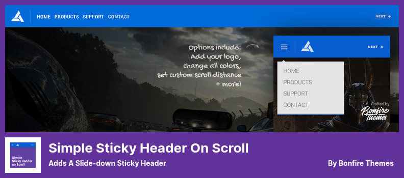 スクロール WordPress プラグインのシンプル スティッキー ヘッダーを使用すると、スライドダウン スティッキー ヘッダーを任意の WordPress テーマに簡単に統合できます。 ユーザーが下にスクロールすると、ページの残りのクイック ナビゲーション オプションを含むヘッダーが表示されます。