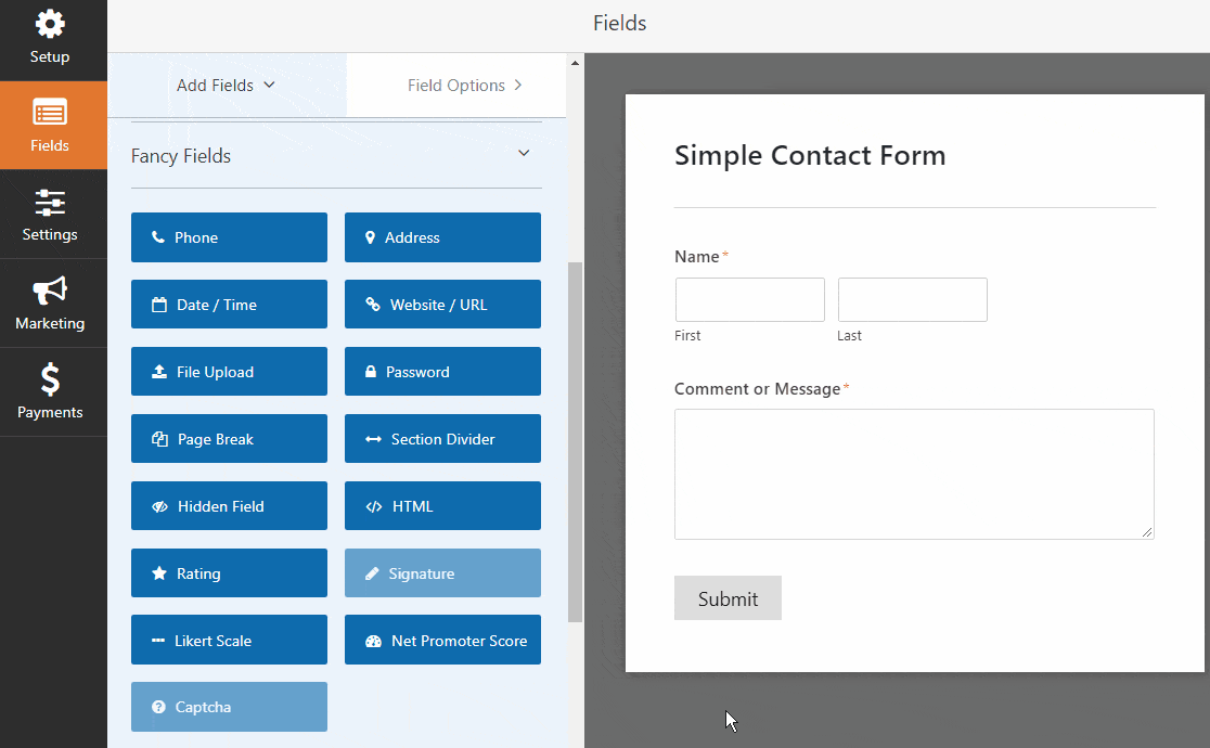 - これは最も初心者に優しいWordPressお問い合わせフォームプラグインであり、ドラッグアンドドロップビルダーを使用して好きなフォームを作成します