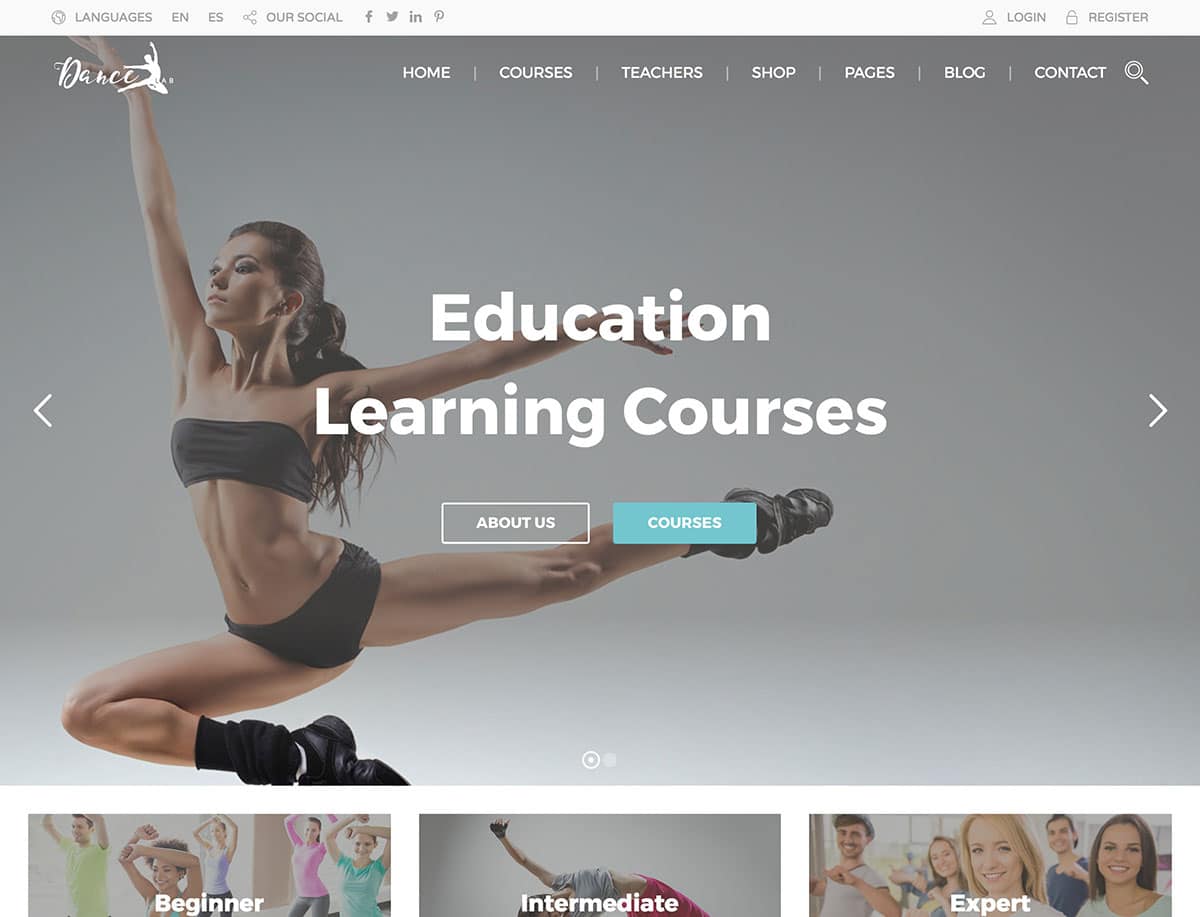 オンラインコースの提供、学生の進学の管理、支払いの回収が可能なWebサイトを作成したい場合は、EducationPackが探しているソリューションになる可能性があります。 Education Packのテーマを構成する多くのWebサイトのデモの中で、ダンスアカデミーのオプションはこのガイドの読者にとって明らかな選択です。