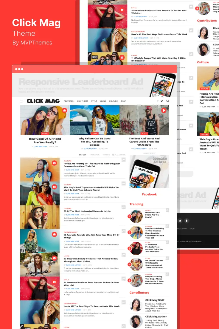 Click Mag は、ブロガーや雑誌サイト向けに設計された究極の WordPress テーマです。 このテーマは、ソーシャル共有オプション、トレンド投稿、最大限の広告露出、SEO 最適化、そして最高のユーザー エクスペリエンスとクリックを実現する魅力的なデザインを備えています。