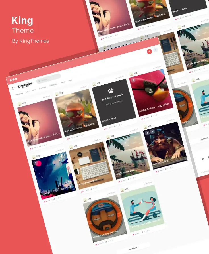 King は、コミュニティ ユーザーが追加のプラグインを必要とせずにテーマ内に含まれるニュース、ビデオ、画像、リスト、投票やアンケート、トリビア クイズを送信できる独自の機能を備え、コンテンツが話題になるよう設計された Viral Magazine WordPress テーマです。