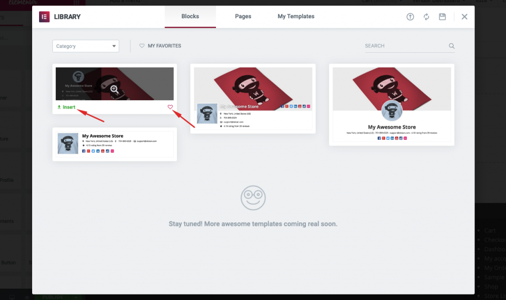 これで、すべてのベンダーが、個々のストアからカスタマイズされたelementorテンプレートを表示できるようになります。