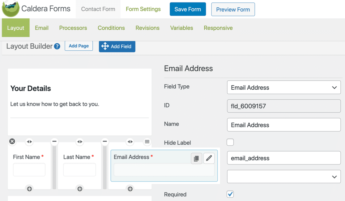 CalderaFormsのフォームビルダーインターフェイスはあまりインタラクティブではありません。 そのビルダーはWordPressダッシュボード内で開きます。 個別のフォームビルダーの設定はありません。