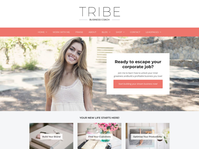 あなたが指導した人々からの推薦状を表示することも、あなたのブログからの最新のコンテンツを共有することと同様に簡単です。 共有する製品がある場合は、それらを配布する場合でも、Webサイトから販売する場合でも、Tribeコーチングテーマのデフォルトのホームページレイアウトにそれらのいくつかをリストできます。 また、コーチングサービスのリードを獲得し、メーリングリストを増やすのに役立つメールオプトインフォームにアクセスできます。 サインアップフォームをコンテンツに埋め込むか、Webサイトのポップアップウィンドウに表示することができます。