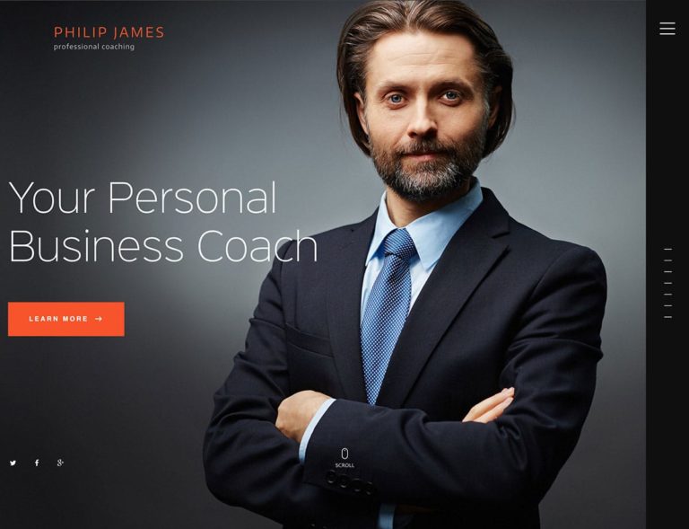 暗い配色とデフォルトの構成により、PJは、コーチングサービスを提供する男性、または男性をターゲットオーディエンスと見なす男性に最適であると言っても過言ではありません。 ただし、このテーマの優れた機能リストにより、どのタイプのコーチもPJを機能させることができるはずです。
