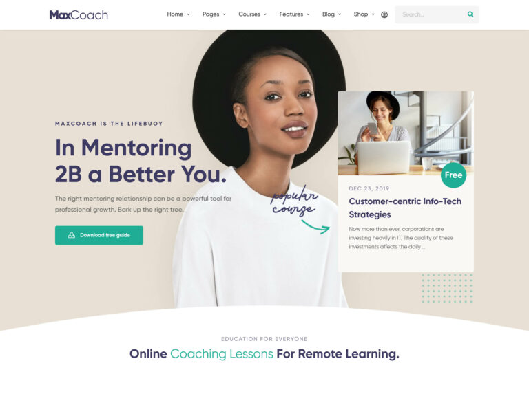 MaxCoachは、優れたオンラインコース公開機能も備えたコーチ向けのテーマです。