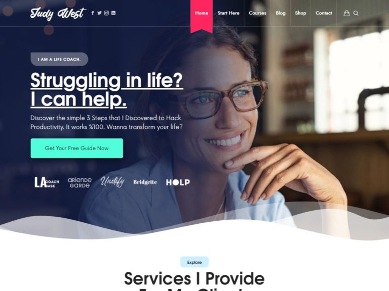 Life Coachには、新しい訪問者がWebサイトに到着するとすぐにそれを獲得するのに役立つ、機能満載のホームページレイアウトがあります。