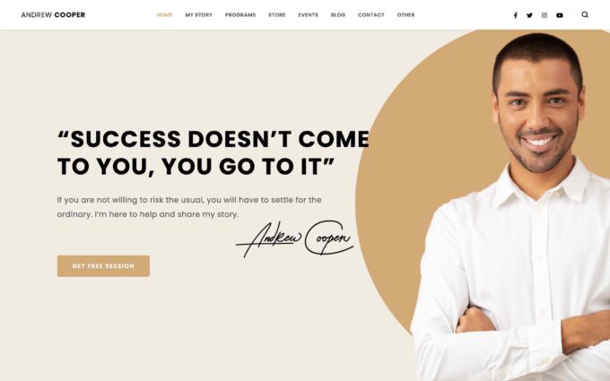 起業家は多目的のビジネステーマですが、コーチングWebサイトの作成に適した多くの機能を備えています。