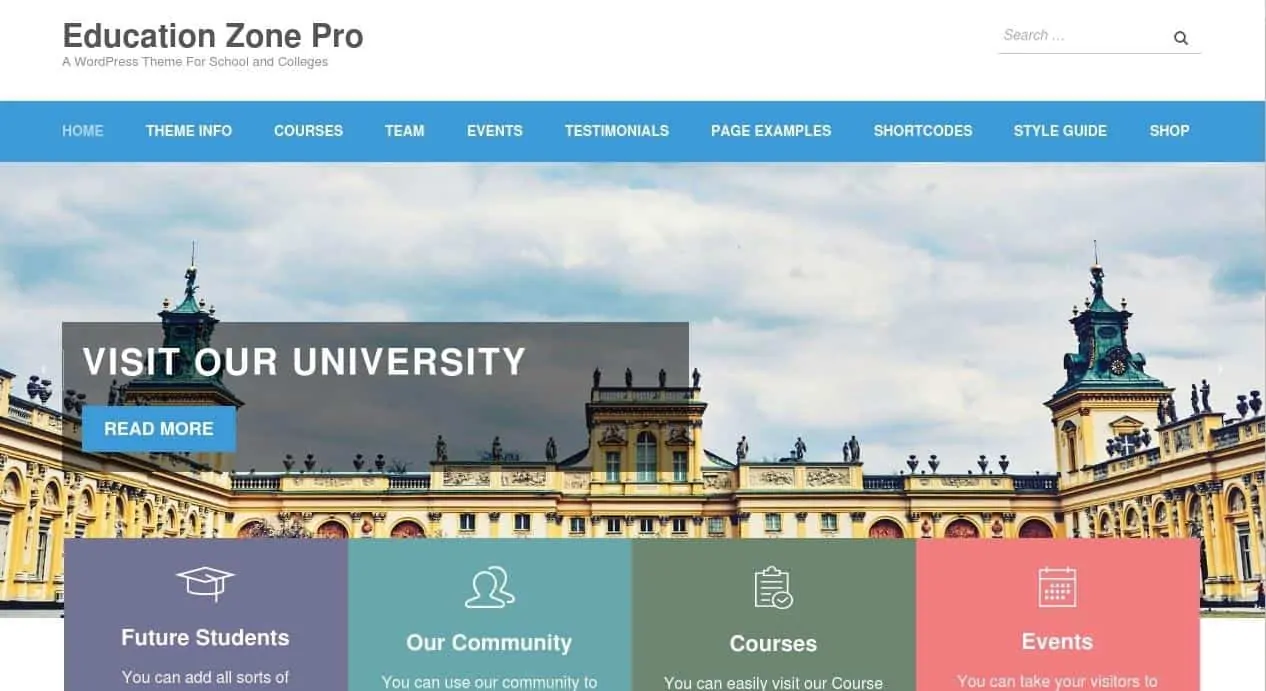 このガイドでは、Education Zone WordPressテーマを選択します。これは無料で、学校のWebサイトにとって重要な要素がすべて含まれているためです。 あなたはここで私たちの教育ワードプレスのテーマのいくつかを見つけることができます。