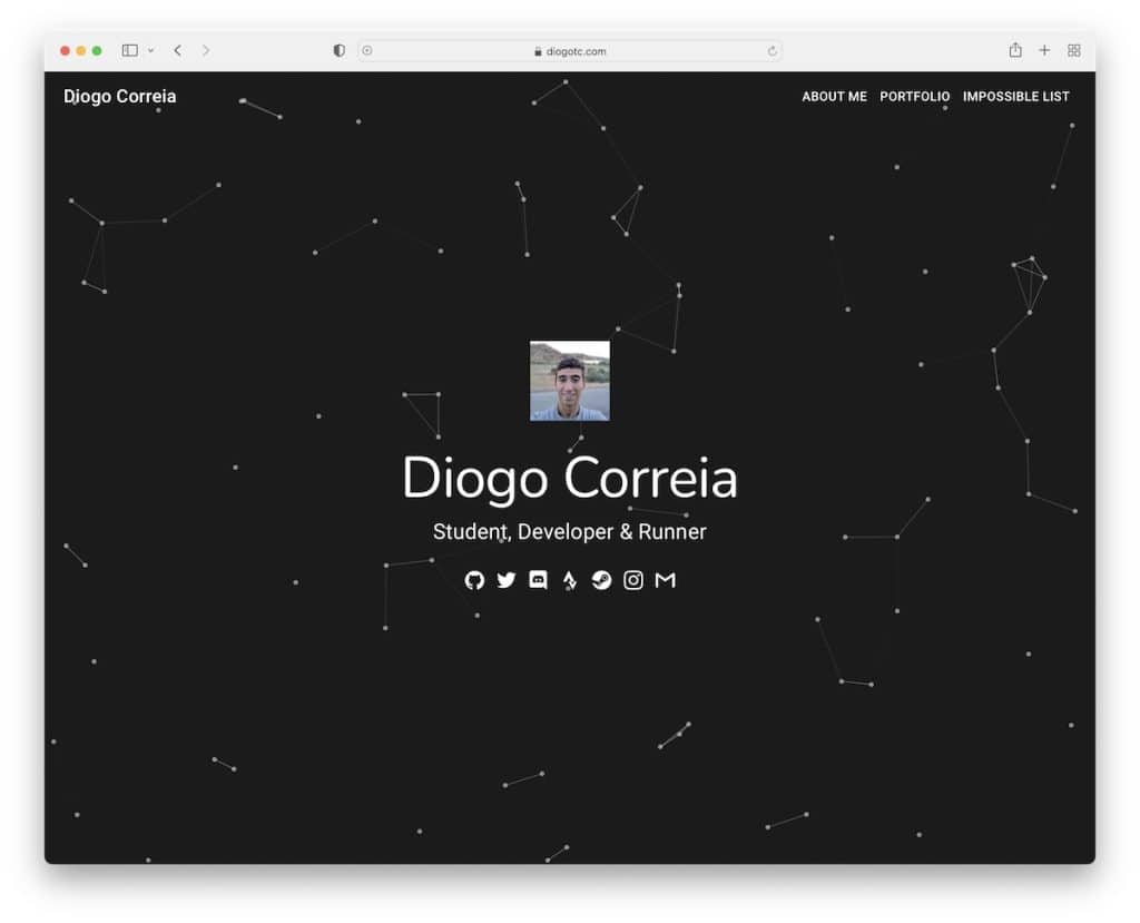 Diogo Correia は、エキサイティングなアバブ ザ フォールド セクションで、パーティクル エフェクトの背景を使用して物事をうまく盛り上げています。