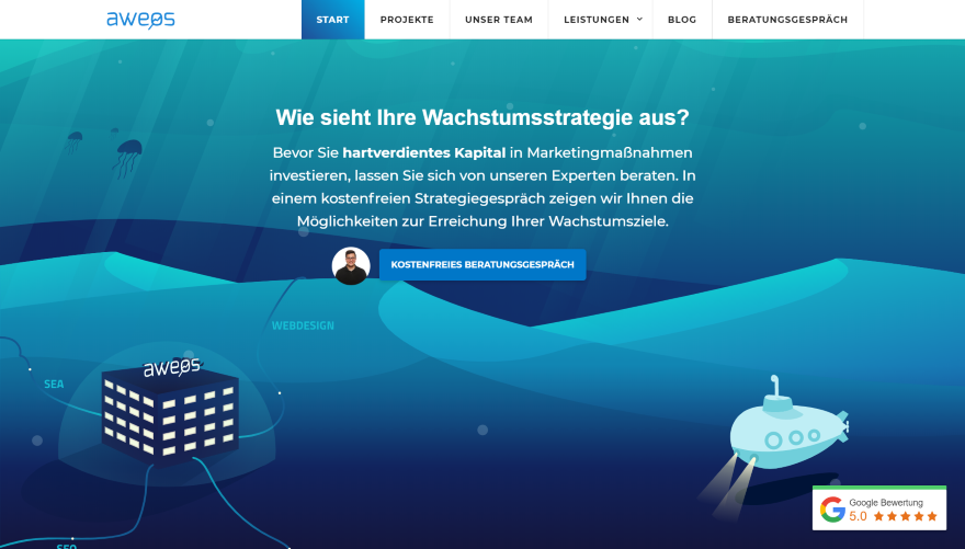 このウェブサイトはクリストスパパドプロスによって提出されました。 アニメーションの背景は、漫画のグラフィックで海中の設定の効果を作成します。 タグラインとアニメーション画像のあるCTAが背景の上にあります。 メガメニューには、3列のリンクと画像が表示されます。 次のセクションでは、情報を提供し、クリック可能な通話リンクと相談リンクを含めます。 チームメンバーには、画像、名前、タイトル、説明、およびその人からの音声メッセージを聞くためのボタンが表示されます。 サービスは、テキストの下にアイコンを含む宣伝文句内に表示されます。 プロジェクトページには、ホバーするとスクロールするカード内の例が表示されます。 各サービスページは同様のデザインに従っており、説明とリンクを含むヘッダーと、それに続く詳細情報が含まれています。 ブログページと投稿は、同様のヘッダーデザインに従います。