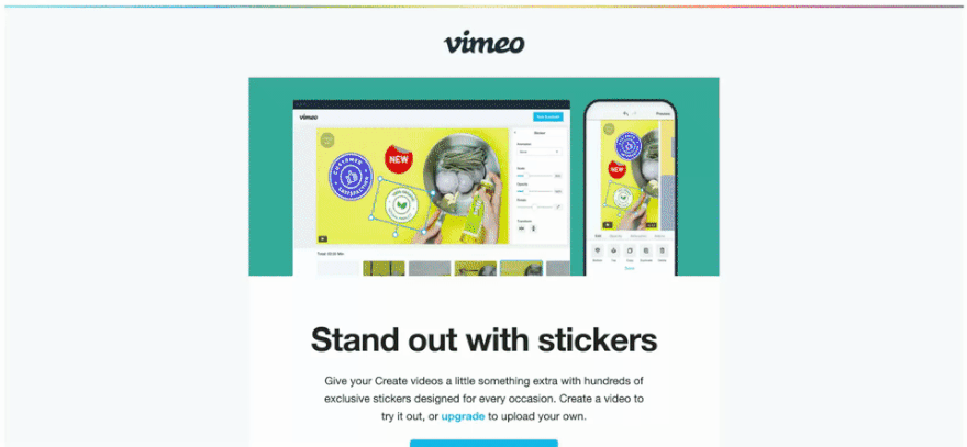 この次の電子メールレイアウトの例は、受信者がすでに顧客である場合に最も一般的なものの1つです。 さまざまなトピックが次々と配置されています。 ウェブサイトのレイアウトによく似ています。 これらの電子メールは、CTAに関するものだけではありません。 以下の最初のメールレイアウトの例はVimeoのもので、プラットフォームに追加したいくつかの新機能を示しています。 これらのメールはVimeoの現在のユーザーを対象としているため、新しい顧客を獲得することではなく、既存の顧客を維持することを目的としています。