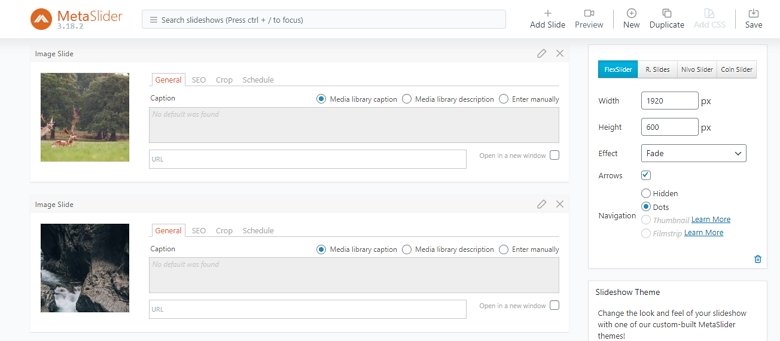 誤解しないでください。単純な画像のスライドショーを作成するだけであれば、MetaSliderは優れたプラグインです。 ユーザーインターフェイスは最小限で、理解しやすく、使いやすいです。 スライドショーの作成は簡単なプロセスです。画像をアップロードし、キャプションを追加するだけで、サイズとトランジション効果を設定できます。