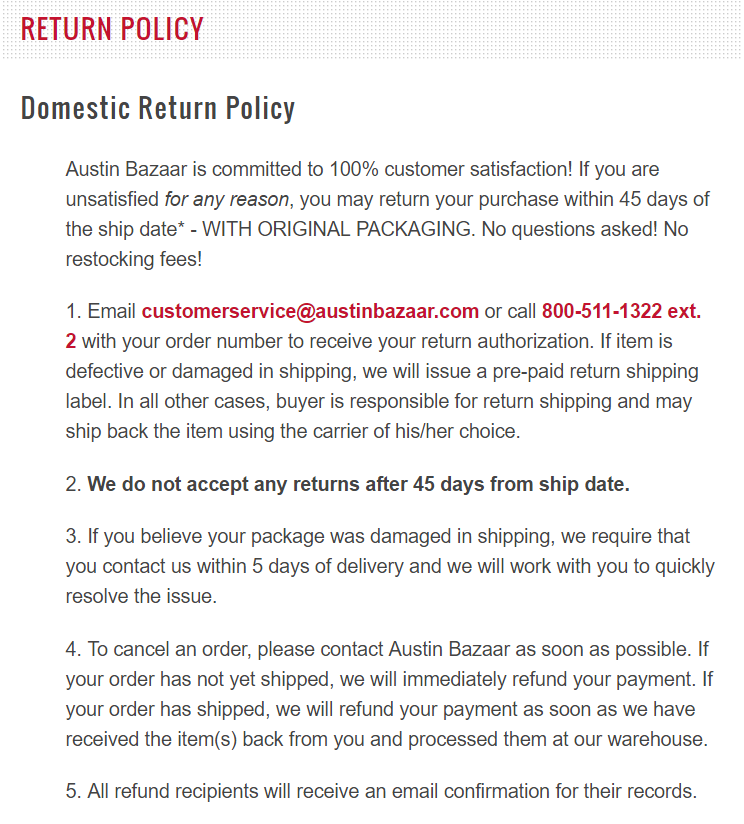 有名な音楽店オースティン バザールは、顧客の返品は完全に無料であることを明らかにしています。