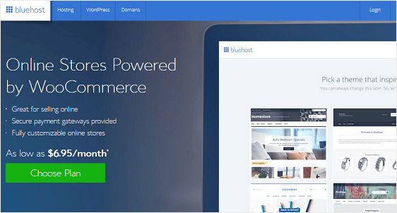 オンラインストアを開始するには、他の種類のWebサイトと同様に、ドメイン名とWebホスティングが必要です。 そのため、開始時にBluehostWooCommerceプランを使用することをお勧めします。