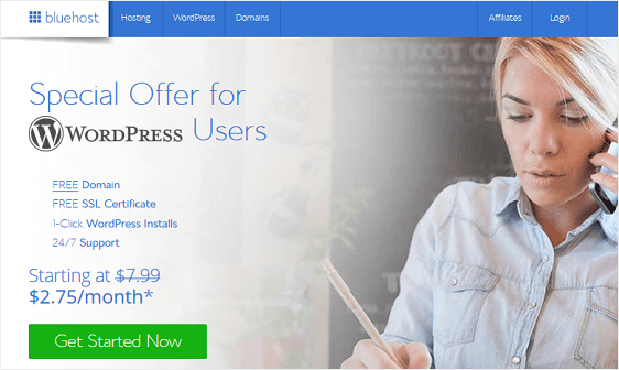 幸い、BluehostとWordPressホスティング契約を結び、ウェブサイトの所有者に無料のドメイン名、セキュリティを強化するための無料のSSL証明書、ウェブホスティングサービスの60%以上の割引を提供しています。