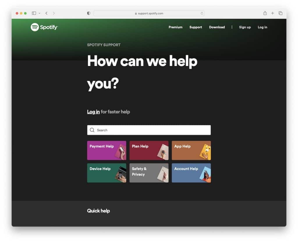 大事なことを言い忘れましたが、Spotify ではアカウントにログインして、さらに迅速なヘルプを利用できます。