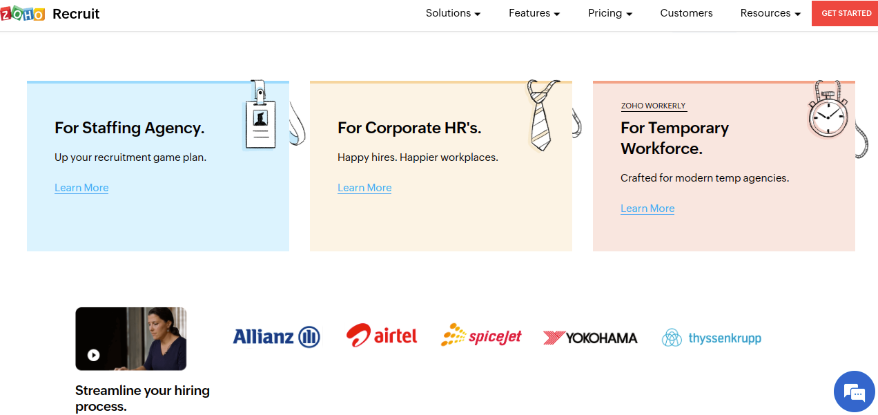 「オールインワンの採用プラットフォーム」を自称する Zoho Recruit は、募集中のポジションの掲載から、面接の調整、適格な候補者の検索まで、すべてを処理します。 人材派遣会社、人材紹介会社、人材派遣会社は、このツールから大きな恩恵を受けています。