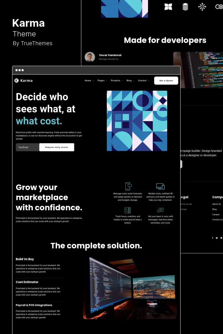 Karma のユニークなデザイン システムを使用すると、Web サイト上のタイポグラフィ、色、ボタンを簡単にカスタマイズできます。 これにより、ブランドのスタイルを反映した、一貫性のある視覚的に魅力的な Web サイトを作成できます。