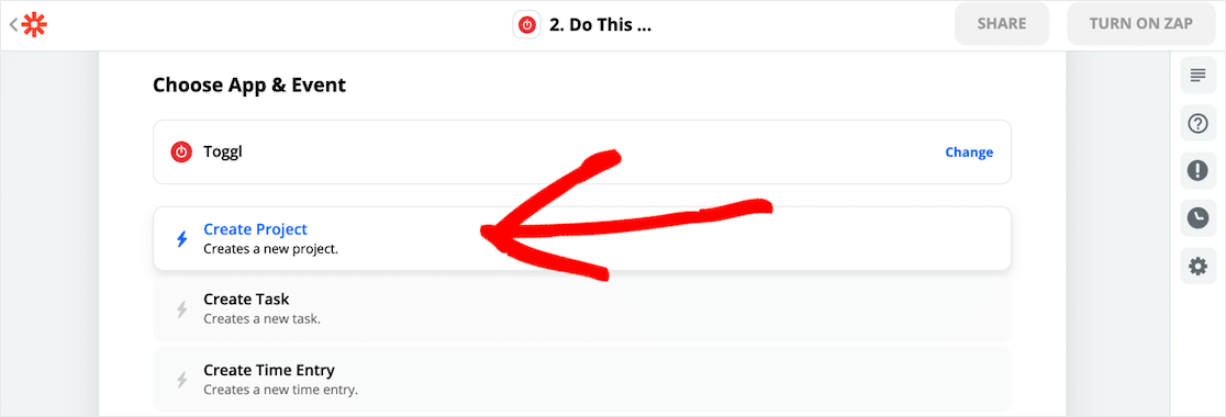 次のステップでは、ZapierをTogglプロジェクトに接続するプロセスを繰り返します。