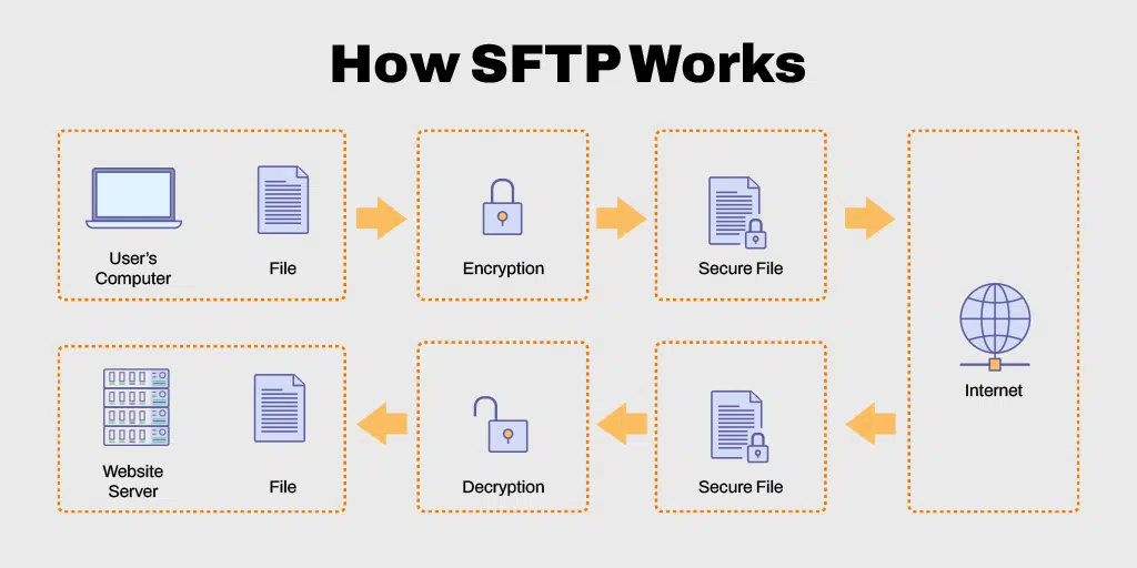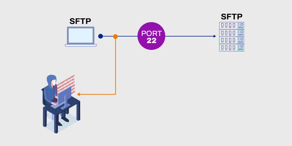 完全な SFTP プロセスと、コンピューターとリモート サーバー間のファイル転送に関連する SFTP ポートの使用状況を見てみましょう。