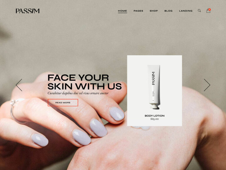 化粧品のeコマースストアで他のほとんどのオンラインショップとは異なるWebデザインを使用したい場合は、Passimを検討することをお勧めします。 ただし、Passimはeコマースストアだけのものではありません。 化粧品やブランドをウェブサイトで販売せずに宣伝するウェブサイトを作成したい場合は、Passimにもそのためのテンプレートがあります。