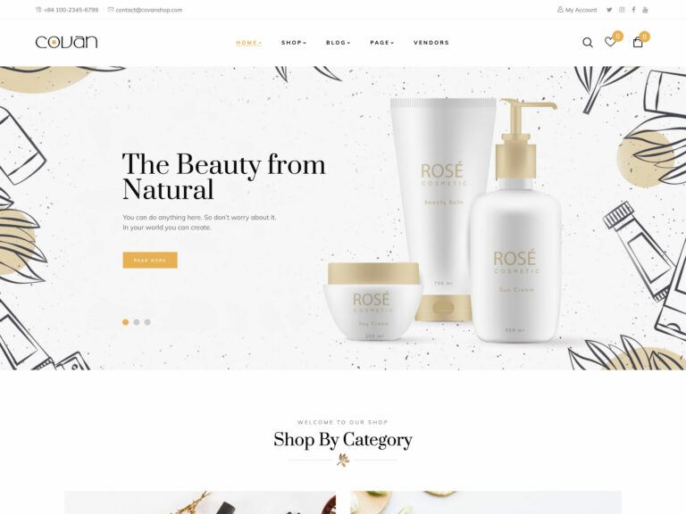 Covanは、WordPressでオンライン化粧品店を作成するためのWooCommerceテーマです。