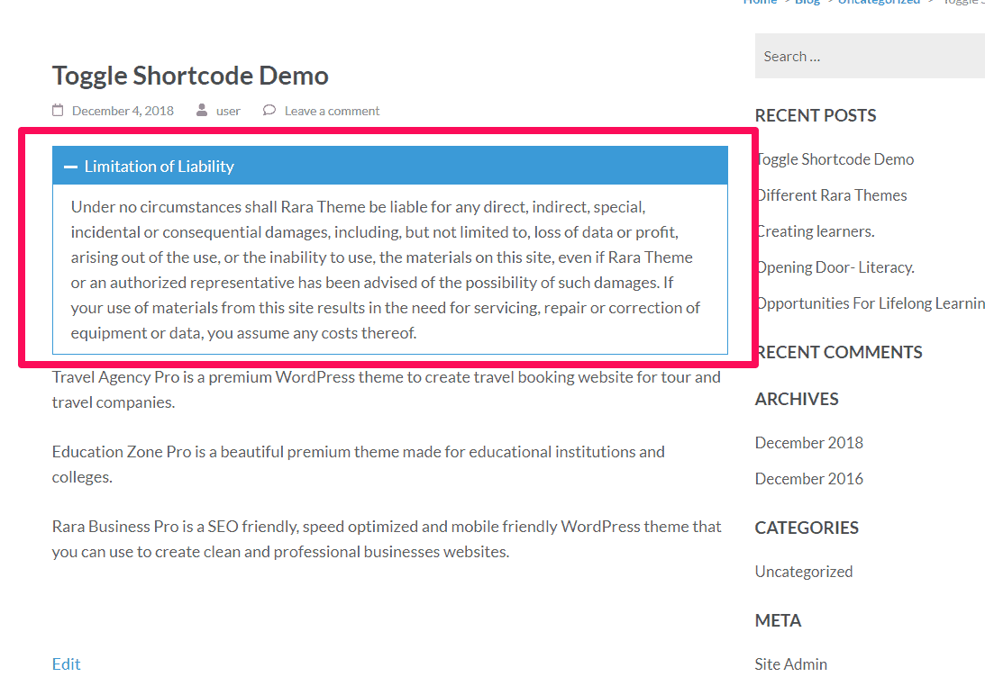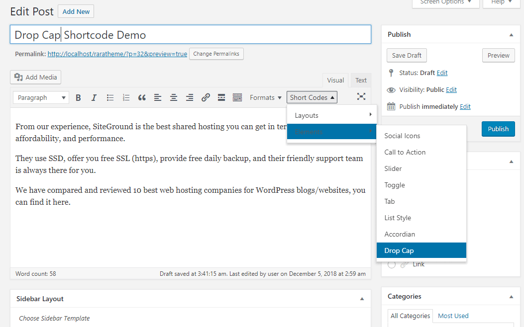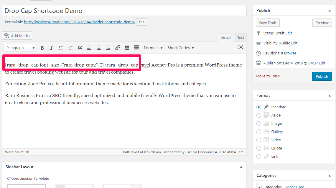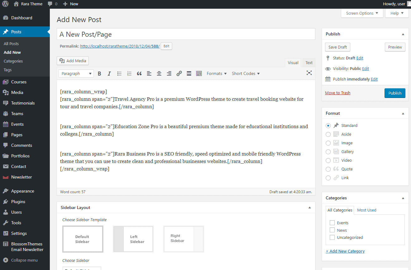 さまざまなテーマとプラグインがショートコードに依存しており、Webサイトに魅力的なルックアンドフィールを提供します。 Rara Themeによって開発されたほとんどのテーマには、適切な形式のコンテンツを作成するのに役立つショートコードが組み込まれています。
