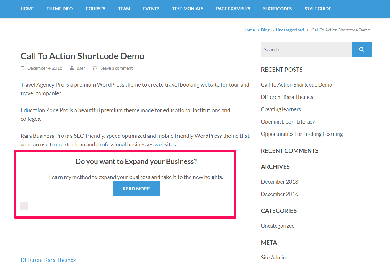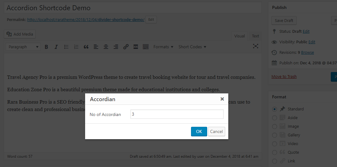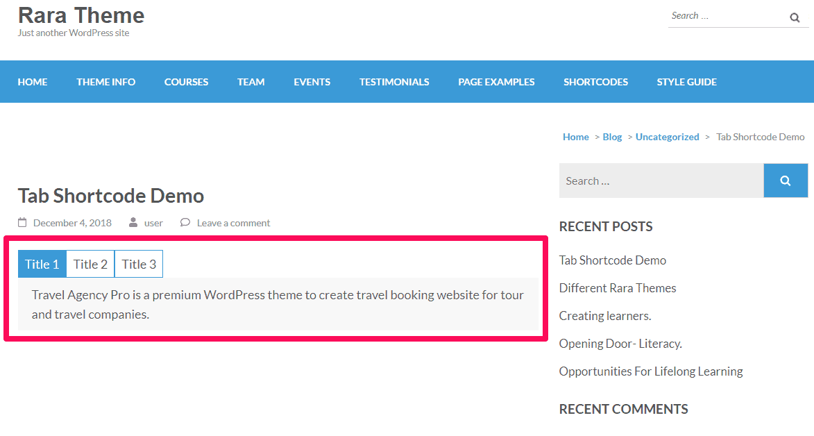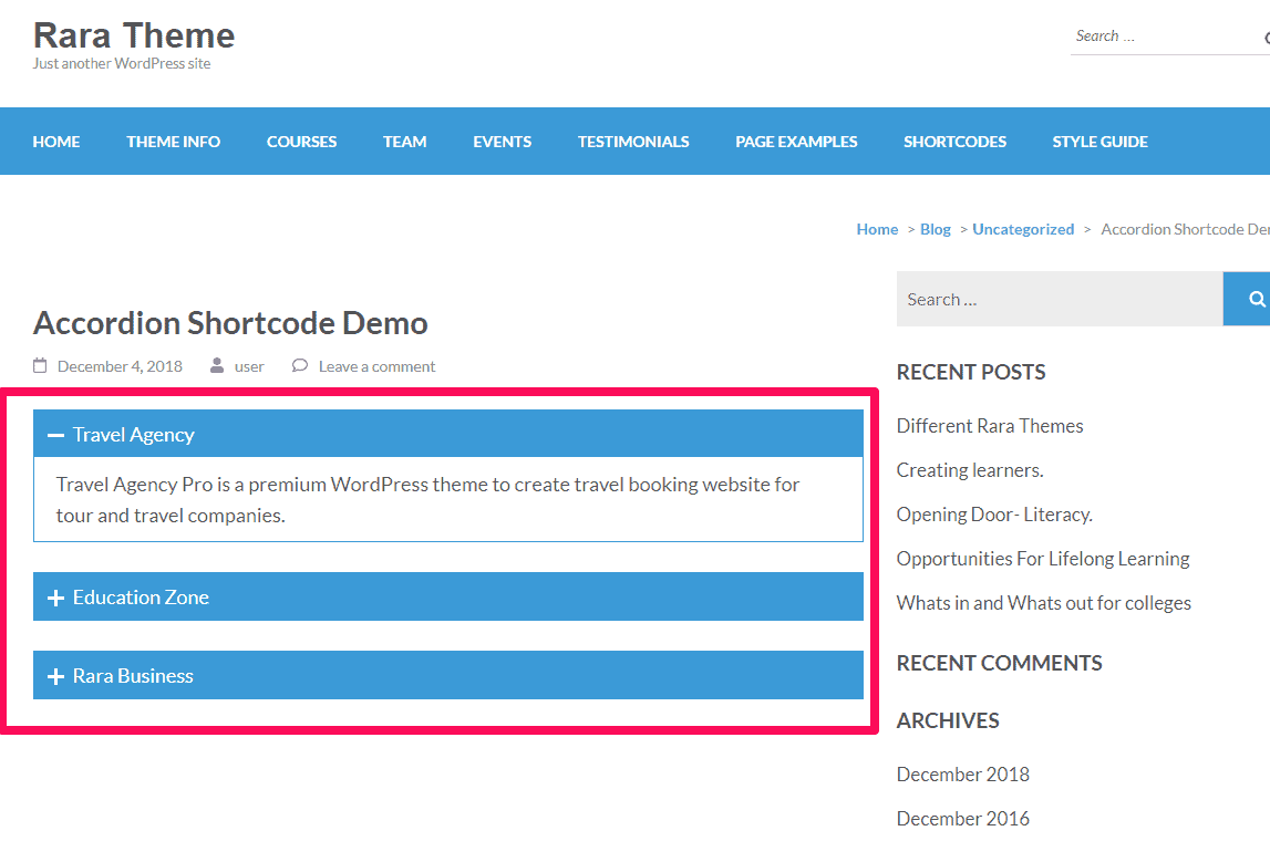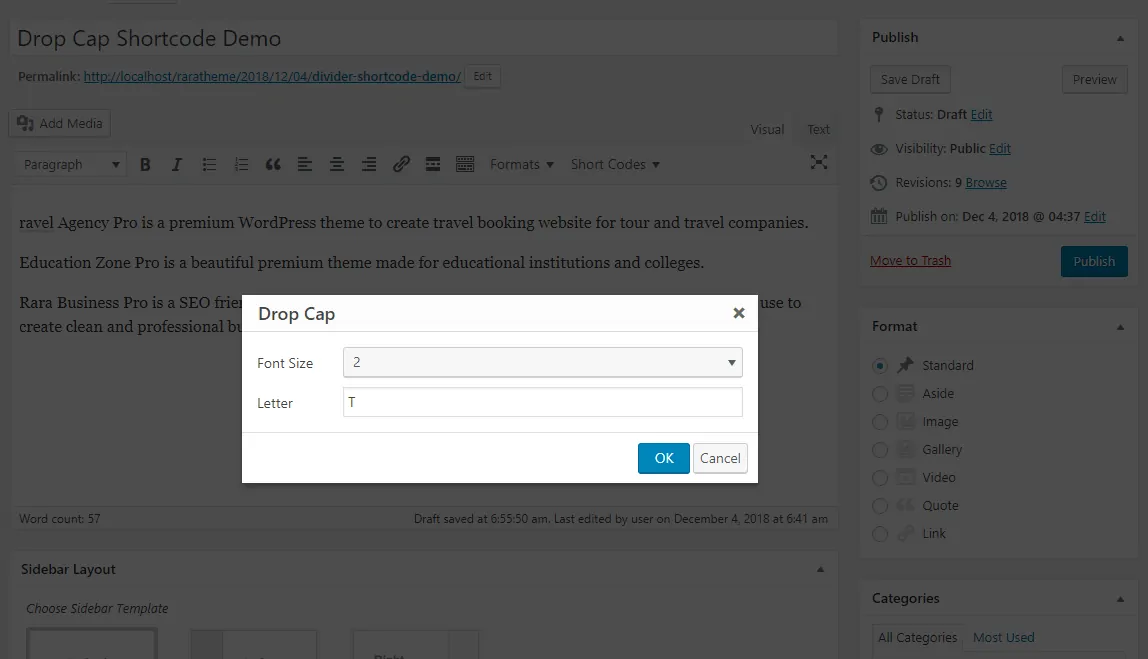 さまざまなテーマとプラグインがショートコードに依存しており、Webサイトに魅力的なルックアンドフィールを提供します。 Rara Themeによって開発されたほとんどのテーマには、適切な形式のコンテンツを作成するのに役立つショートコードが組み込まれています。