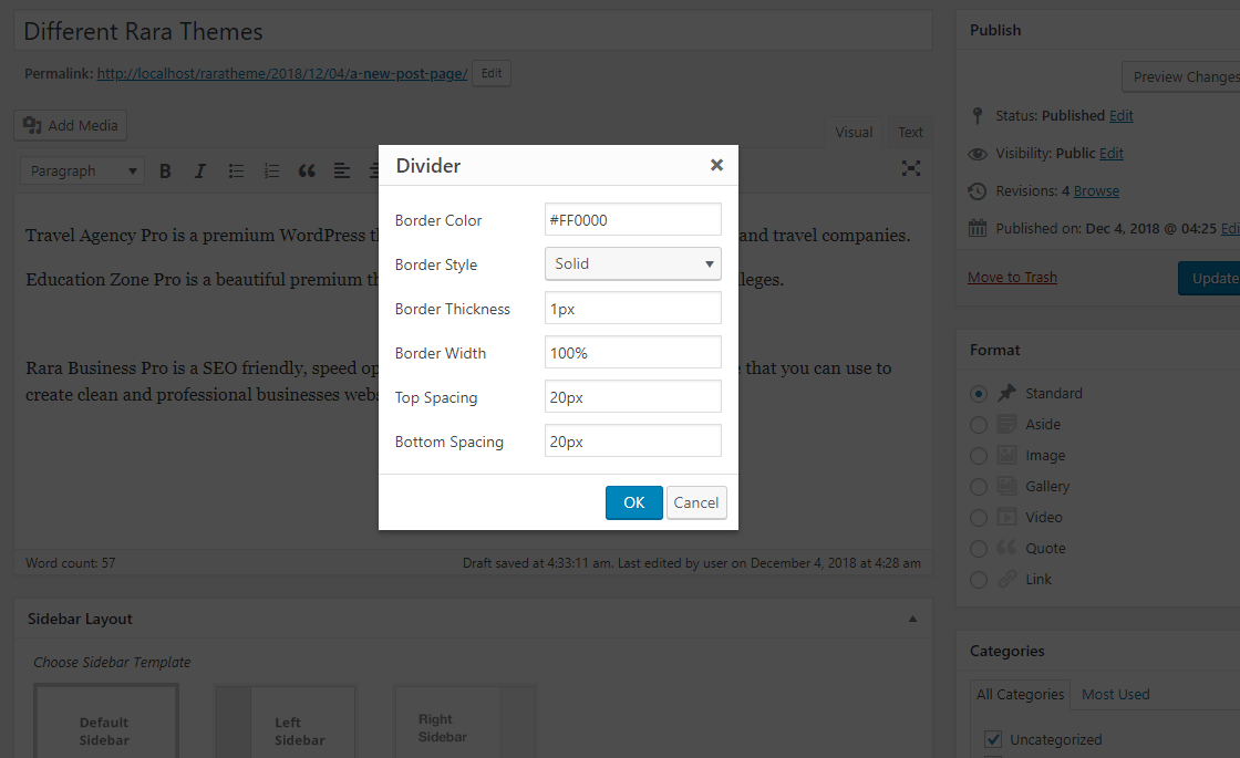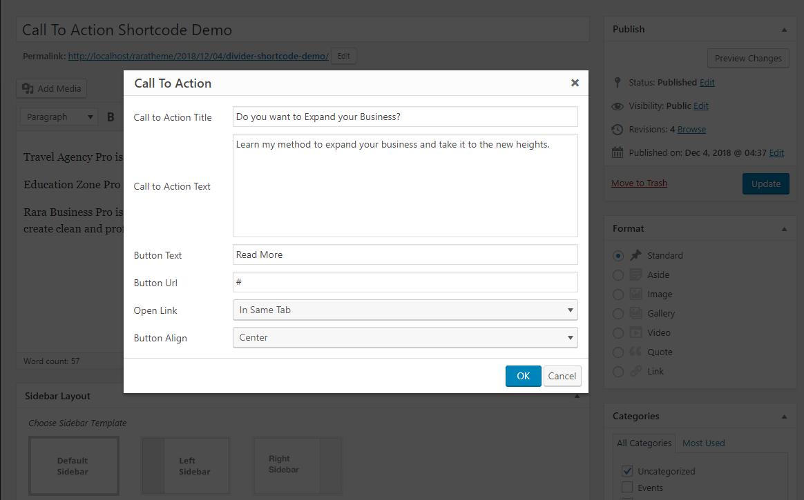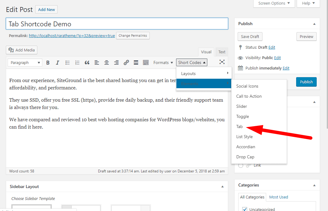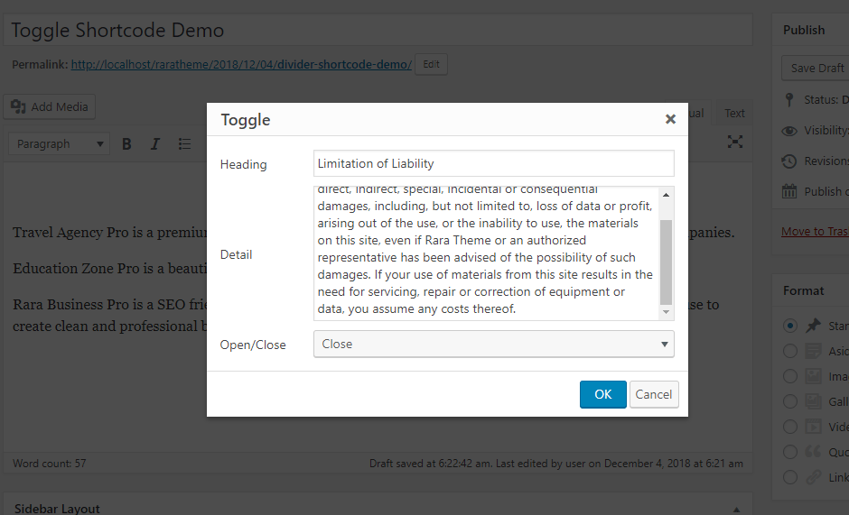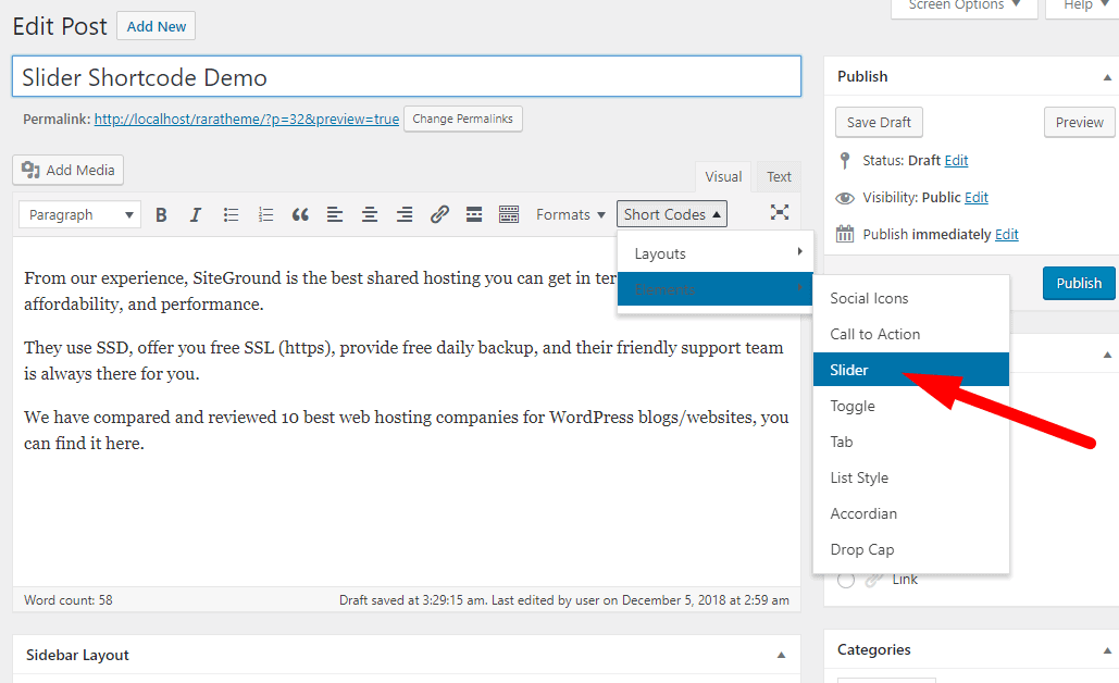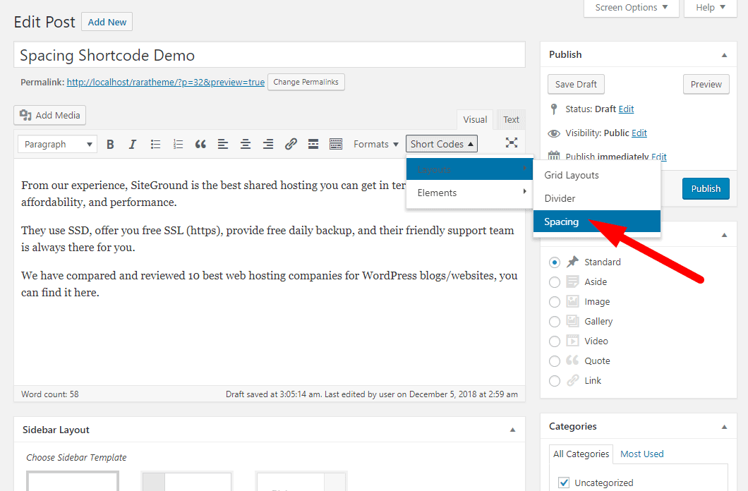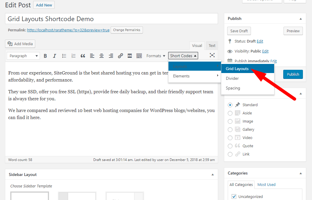 Raraテーマのショートコードを使用するには、次の手順に従ってください。