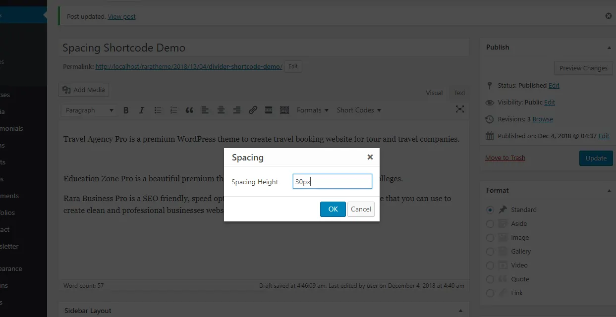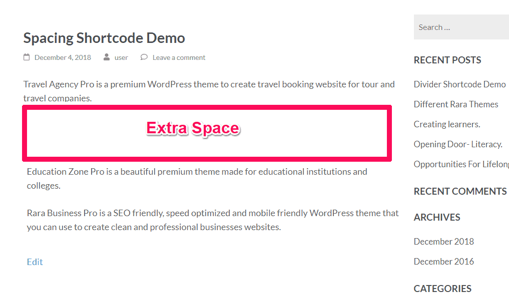 間隔のショートコードは、テキスト/段落の間に余分なスペースを追加するために使用されます。