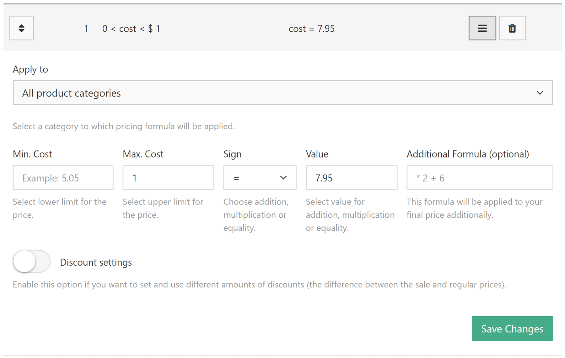 가격 책정 공식 덕분에 사이트로 가져오는 각 제품에 추가되는 마크업의 양을 결정할 수 있습니다. 일을 단순하게 유지하기 위해 AliDropship에는 자체 가격 공식이 포함되어 있습니다. 그러나 원하는 경우 자유롭게 만들 수 있습니다.