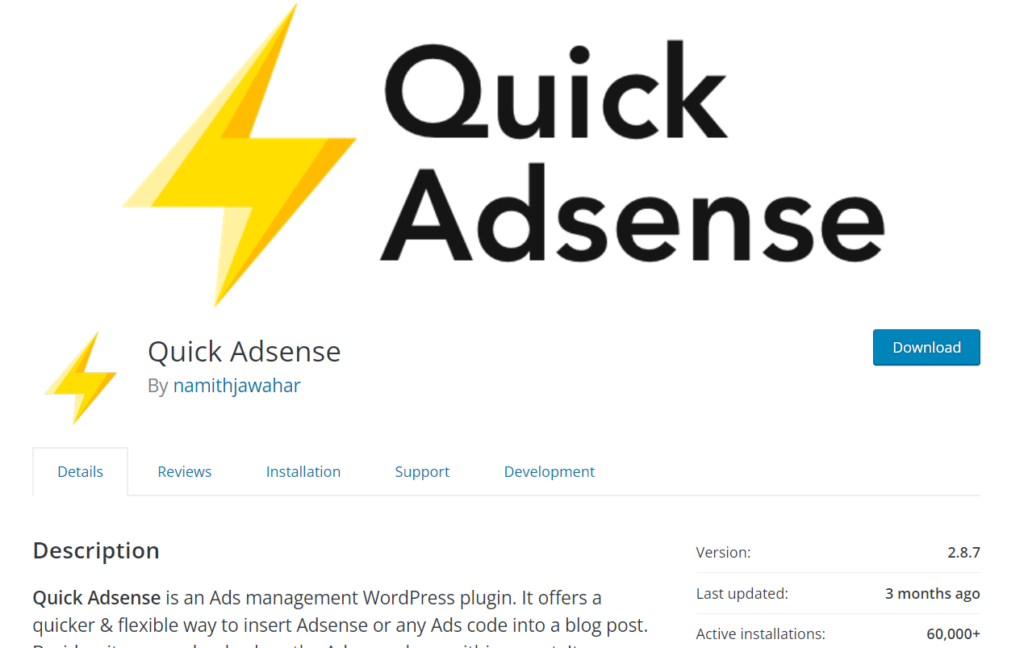 Quick AdSense는 WordPress용 무료 광고 관리 플러그인입니다. WordPress 저장소에서 무료로 다운로드할 수 있습니다.