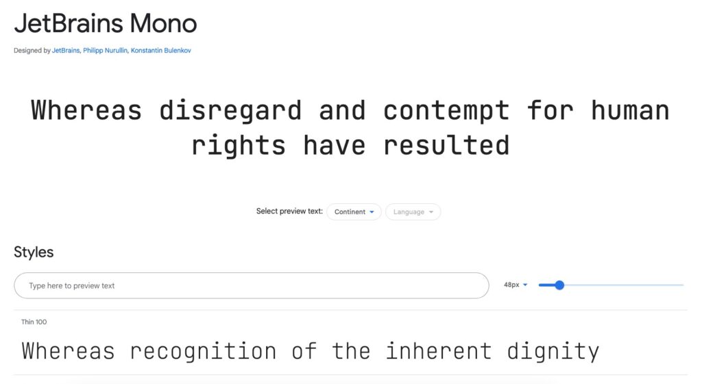 코딩 글꼴 제품군에 비교적 새롭게 추가된 JetBrains Mono는 개발자의 읽기 환경을 개선하는 데 중점을 두고 만들어졌습니다. 문자 간격과 높이가 증가하여 가독성이 크게 향상되고 눈의 피로가 줄어듭니다.
