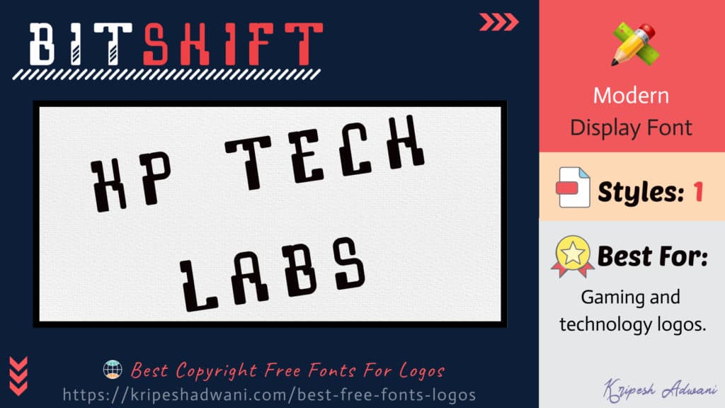 Bitshift는 게임을 중심으로 하는 디스플레이 카테고리의 무료 글꼴입니다. 이 글꼴은 게임 및 기술 로고에 가장 적합합니다.