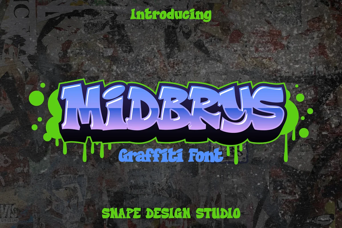 Midbrys 디스플레이 글꼴은 거리 예술 그래피티에서 영감을 얻었으며 멋진 그래피티 글꼴 중 하나입니다. 그렇기 때문에 디자인에 독특한 엣지를 부여하려는 경우 이 서체가 완벽합니다.