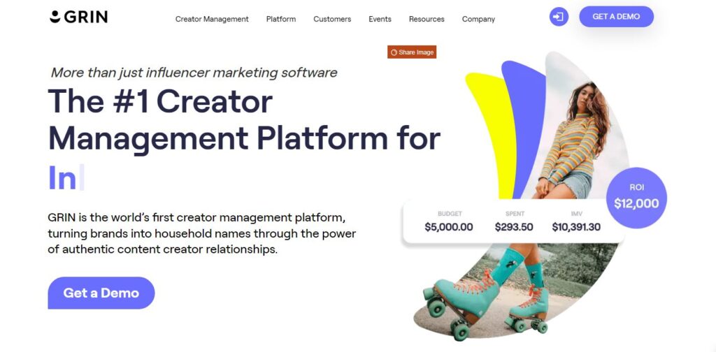 소기업을 위한 최고의 인플루언서 마케팅 플랫폼 목록의 다섯 번째 옵션은 GRIN입니다. GRIN은 크리에이터 파트너십의 힘을 활용하여 전자 상거래 회사를 위한 인플루언서 마케팅 플랫폼을 포함한 올인원 크리에이터 관리 플랫폼입니다.
