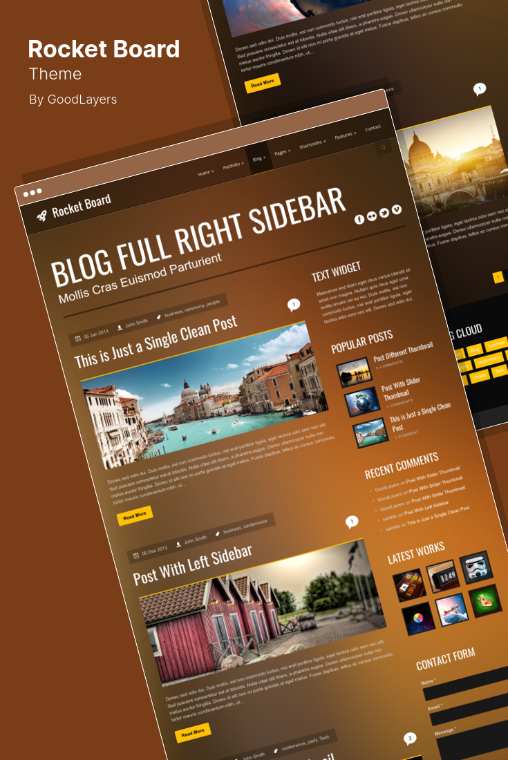 Rocket Board는 METRO 스타일의 뛰어난 WordPress 포트폴리오 테마입니다. 썸네일 크기를 원하는 크기로 쉽게 설정하고 각 썸네일을 원하는 순서로 정렬할 수 있습니다. 각 메트로 박스에 개별 색상을 설정하거나 관리자 패널에서 기본 색상을 사용할 수 있습니다.
