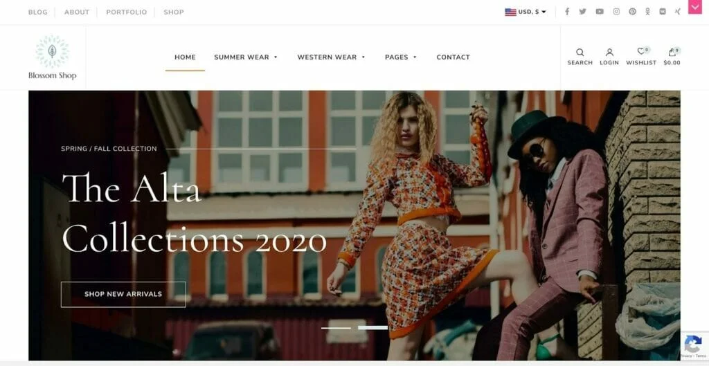 Blossom Shop Pro는 특히 의류 또는 액세서리 틈새 시장의 비즈니스에 적합한 아름다운 테마입니다. 큰 사진을 위한 공간이 있는 이 테마는 제품을 과시하는 것을 목표로 합니다. 또한 사용자 지정 가능한 배너 옵션이 포함되어 있어 자연스럽게 고객의 관심을 끄는 방식으로 판매 및 신제품을 광고할 수 있습니다. 제품 페이지는 미니멀하고 스타일리시하며 훌륭한 블로그 페이지도 있어 고객을 참여시키거나 비하인드 스토리를 엿볼 수 있습니다.