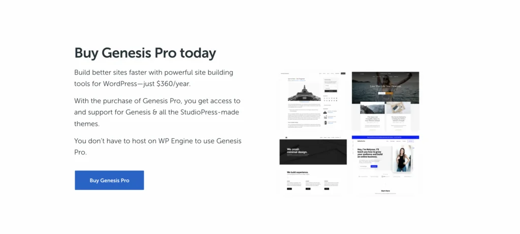Genesis는 가벼운 WordPress 마케팅 테마입니다. Genesis는 웹사이트 마케팅에 사용할 수 있는 뛰어난 기능을 갖추고 있습니다. 기본 제공 댓글 시스템, 광고 기능, 여러 레이아웃 옵션, 라이브 테마 사용자 정의 도구, 사용자 정의 페이지 템플릿, 자동 크기의 추천 이미지 등과 같은 기능이 함께 제공됩니다. 이 외에도이 WordPress 테마는 SEO에 최적화되어 있습니다.