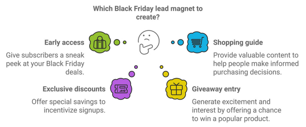 블랙 프라이데이 테마의 리드 마그넷에 대한 몇 가지 아이디어는 다음과 같습니다.