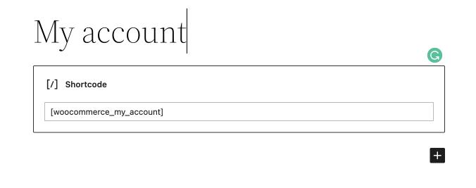 12. 마지막으로 WooCommerce 내 계정 단축 코드 를 추가합니다.