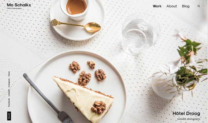 MO SCHALKX는 상업 사진 및 영화 웹사이트입니다. 이 웹사이트의 소유자는 네덜란드 사람입니다. 그리고 그는 Elementor와 함께 웹사이트를 개발합니다. 포트폴리오 사이트입니다. 이 웹사이트에서 그는 현재 모든 프로젝트를 업로드합니다.