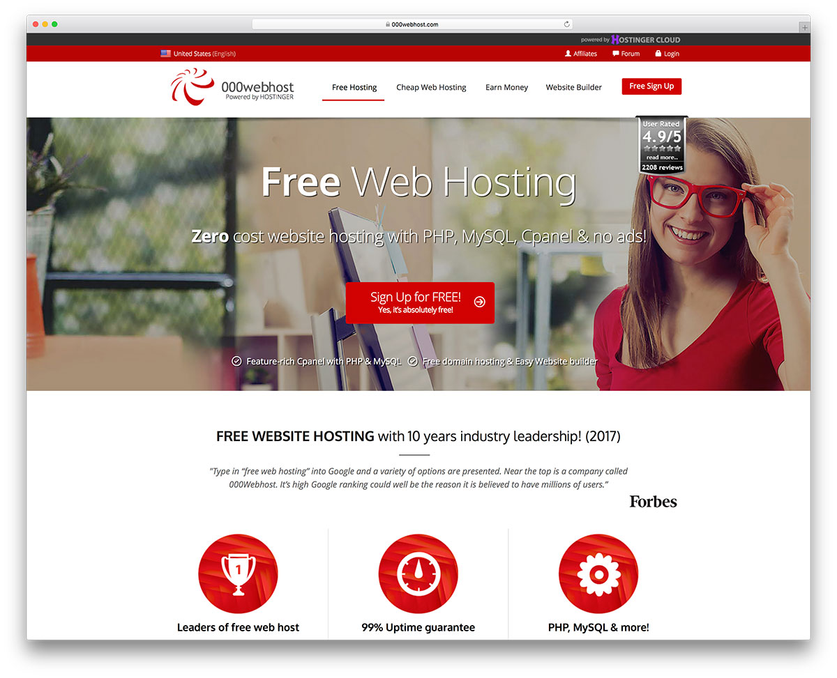 무료 서비스에는 암호로 보호된 디렉토리 및 하위 폴더, 웹사이트 통계 및 호환성 문제가 없는지 확인하기 위한 3개의 PHP 버전이 포함됩니다. 다른 멋진 기능으로는 계정 관리를 위한 제어판, MySQL 데이터베이스 관리를 위한 phpMyAdmin, 이메일에 액세스하기 위한 웹메일 등이 있습니다. 그리고 그들은 귀하가 서비스 약관을 준수하는 한 귀하의 사이트를 삭제하지 않을 것을 약속합니다.