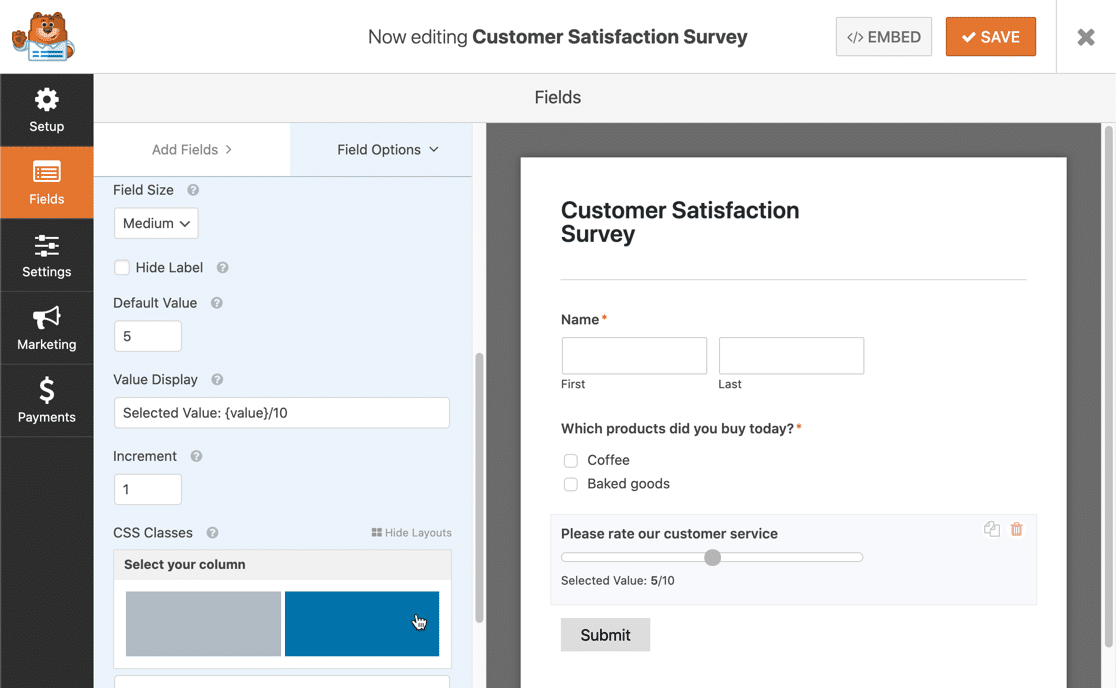양식을 사용자 정의하는 손쉬운 방법도 많이 있습니다. 예를 들어 양식 작성기의 드롭다운을 사용하여 필드 크기를 빠르게 선택할 수 있습니다.